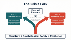 The Crisis Fork. Copyright Tharawat Family Business Forum, 2026.